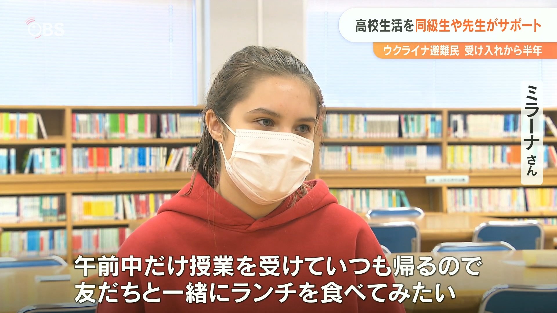 (ウクライナ避難民・ミラーナさん)「午前中だけ授業を受けていつも帰るので友だちと一緒にランチを食べてみたい」