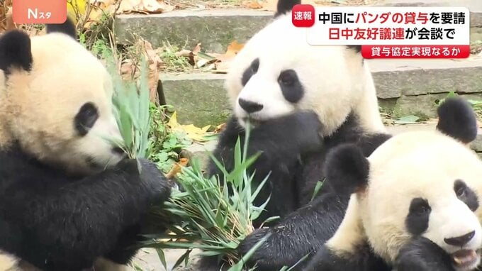 中国を訪れている超党派の日中友好議員連盟がパンダの貸し出しを要請しました。自民党の森山幹事長がきょう、中国の対外交流機関である中国人民対外友好協会の楊万明会長との会談後、明らかにしました。来年2月に…