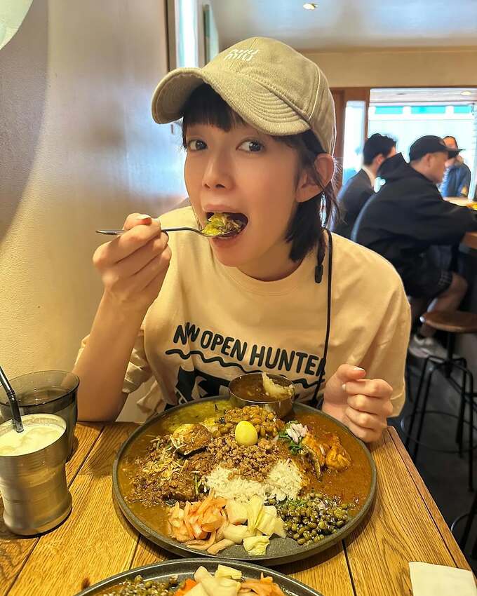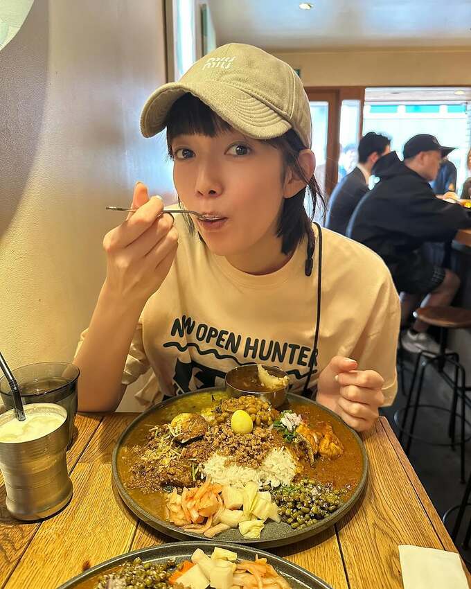 投稿された画像では、豪華な具材がたっぷりのカレーを、美味しそうに楽しむ、佐藤栞里さんの姿が見て取れます。