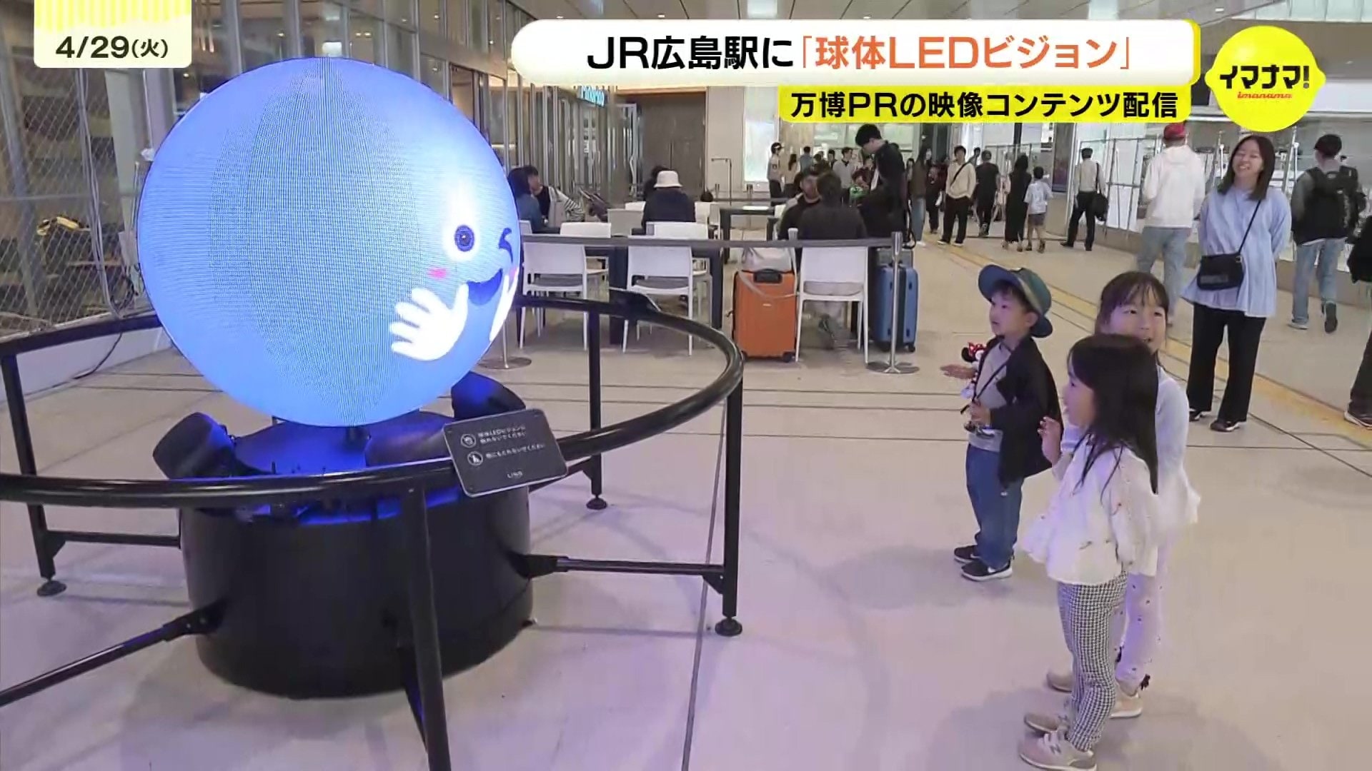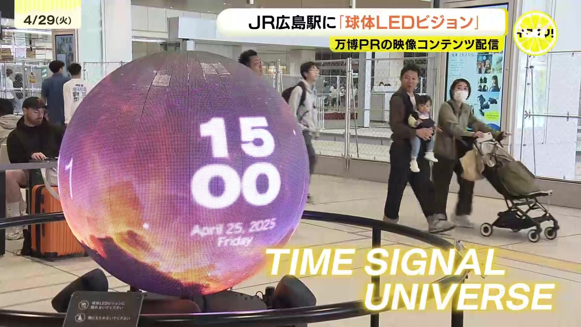 JR広島駅で大阪・関西万博の魅力を発信する球体ビジョンのお披露目がありました。
