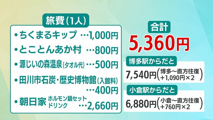 JR博多駅からは、博多~直方の往復料金2180円を追加して合計7540円。