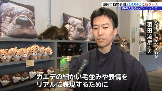そこで飼育員が撮影したカエデの寝顔を4倍の大きさにして、フカフカのクッションにプリントしました。