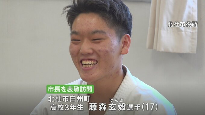大柴邦彦市長を表敬訪問したのは北杜市白州町の高校3年生、藤森玄毅選手です。