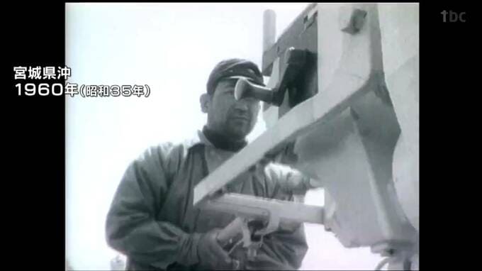 昭和35年=1960年に宮城県沖で撮影されたクジラ漁、捕鯨です。