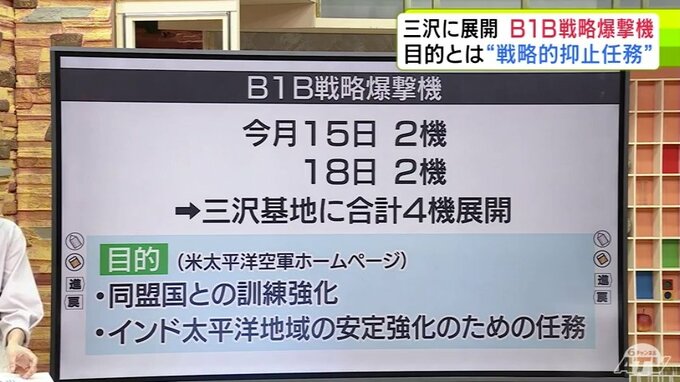 アメリカの太平洋空軍のホームページによりますと「同盟国との訓練強化」や「インド太平洋地域の安定強化のための戦略的抑止任務」などを目的とした展開だということです。
