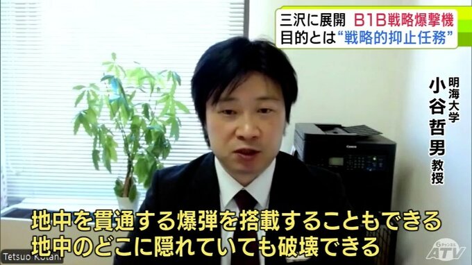 「最も搭載量が大きいので、爆弾やミサイルを最大限積める航空機になります。地中を貫通する爆弾を搭載することもできるので、地中のどこに隠れていても、破壊することができる。B1Bが米韓の演習に参加することを金正恩総書記は最も恐れていると言われている」