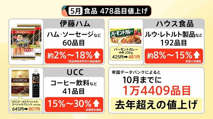 帝国データバンクによりますと、2025年1月から10月までに1万4409品目が値上げをするということで、すでに2024年の1年間を超える勢いです。