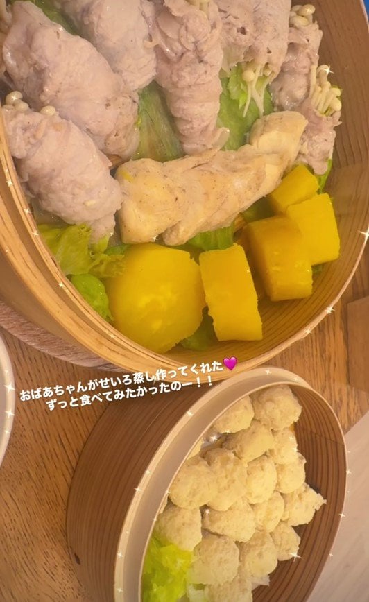 希空さんは「おばあちゃんがせいろ蒸し作ってくれた❤」と綴ると、画像をアップ。