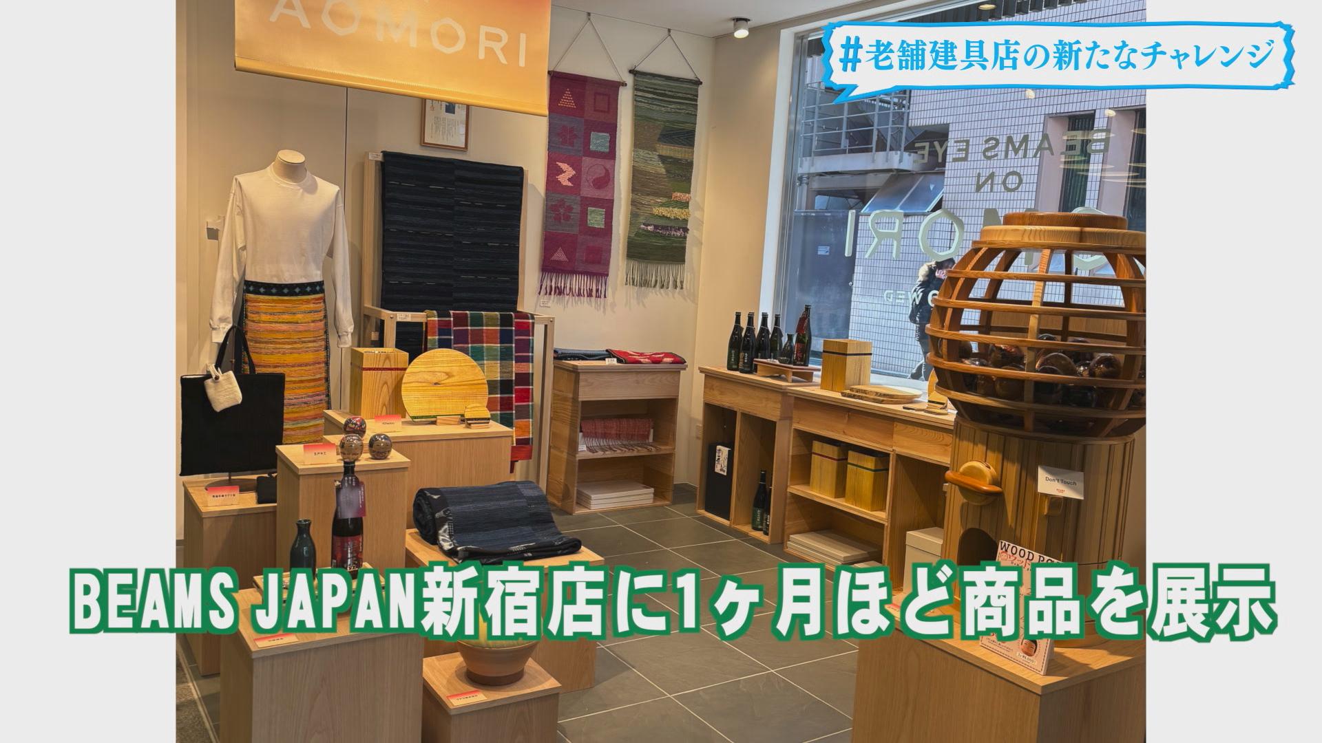 「青森県が、セレクトショップのBEAMS JAPANと連携してインバウンド向けの商品開発事業ををやってまして、そこに参加させていただきました。BEAMS JAPAN新宿店に1ヶ月ほど展示させていただきました。国内外のたくさんの方に回してもらい喜んでいただいたそうです」