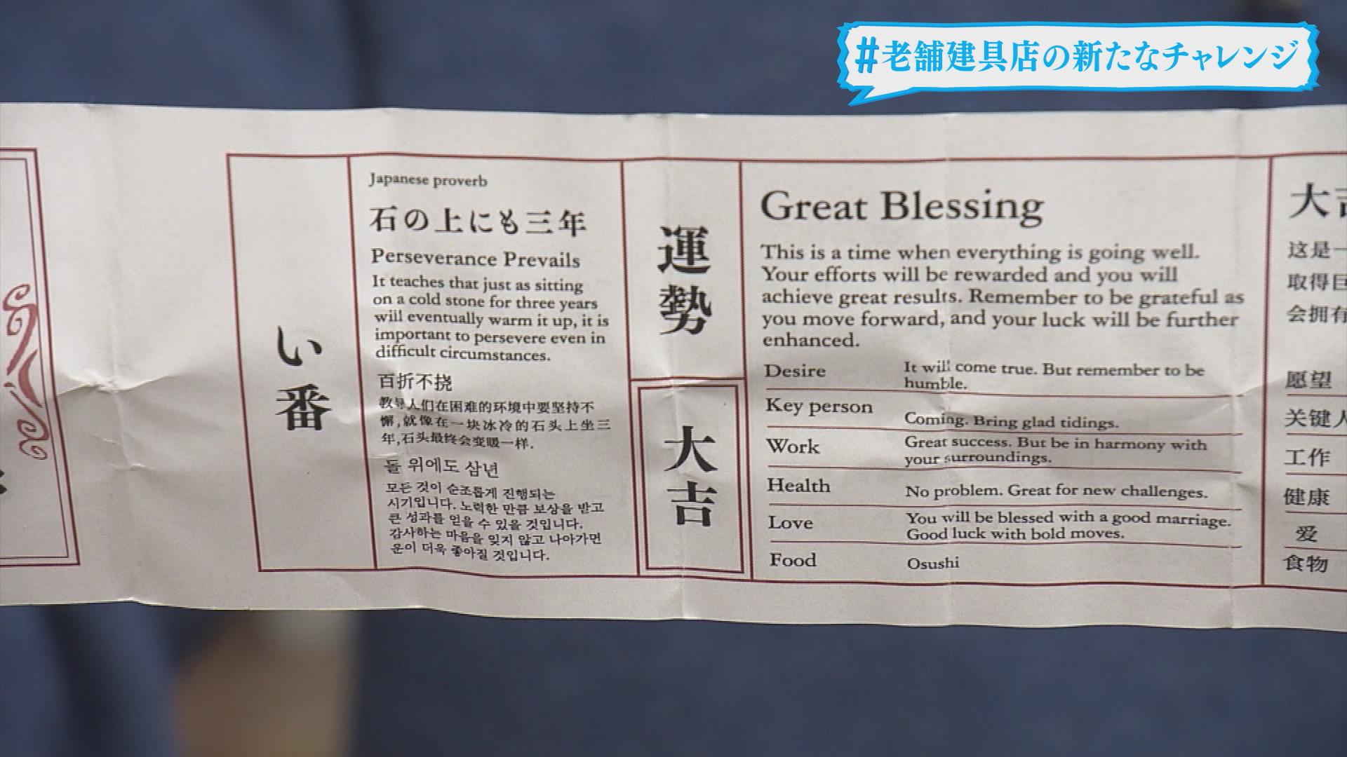カプセルを開けてみると、英語と中国語とハングル語で記されたおみくじが入っています。
