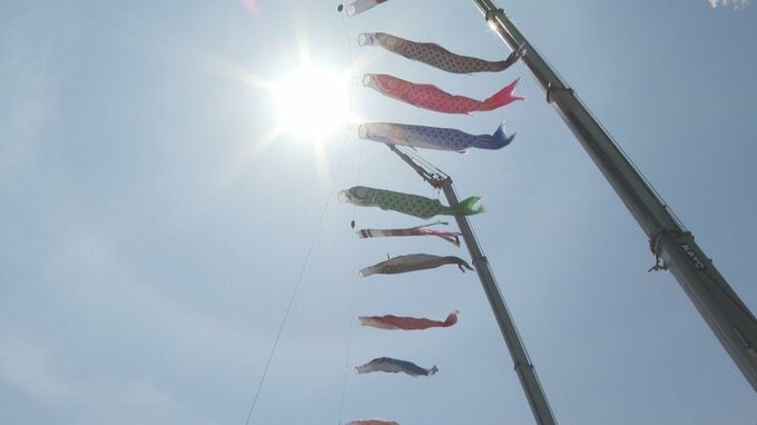 5月5日の「こどもの日」を前に、青森県中泊町では大型クレーン車で約40mまで揚げられた「こいのぼり」が青空を悠々と泳いでいます。春風をいっぱいに受け、田園地帯の空を悠々と泳ぐ「こいのぼり」。泳いでいるの…