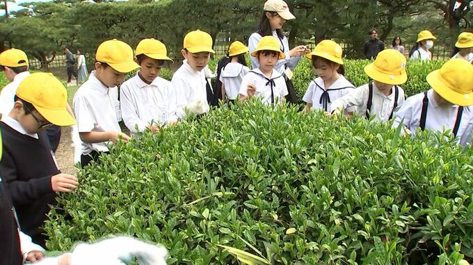 きょう5月1日は八十八夜です。国の特別名勝、高松市の栗林公園で小学生が新茶の茶摘みを体験しました。