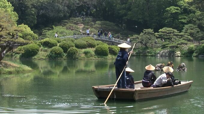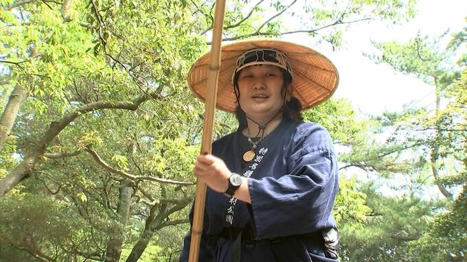 園内で運行されている和船初の女性船頭、岩田由佳さんです。3月に栗林公園で働き始めた岩田さん。約2か月の研修を受け技術とおもてなしの心を磨きました。