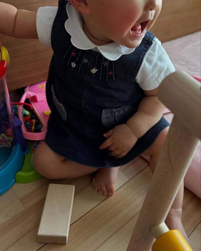 そして「よちよち歩きはじめた娘」「まだまだ抱っこ紐大好き」さらに、友人からもらった子ども服について「おさがりがかわいすぎる」と、どんなことでも娘について全てが可愛くてたまらない様子を伝えています。