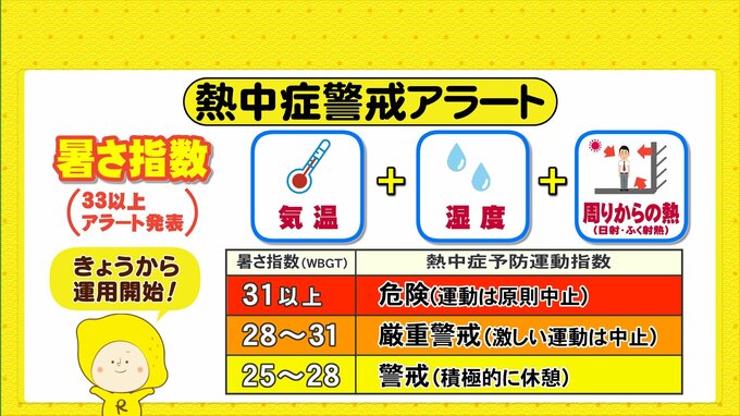 最近は、最高気温が25℃以上の夏日となる日もあり、日中は汗ばむ陽気になっています。そんな中、環境省はことしの熱中症警戒アラートの運用を4月23日(水)から開始しています。