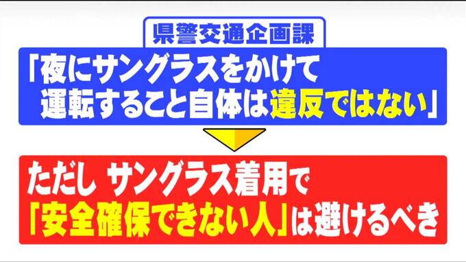 県警によると、「夜にサングラスをかけて運転すること自体は違反ではない」