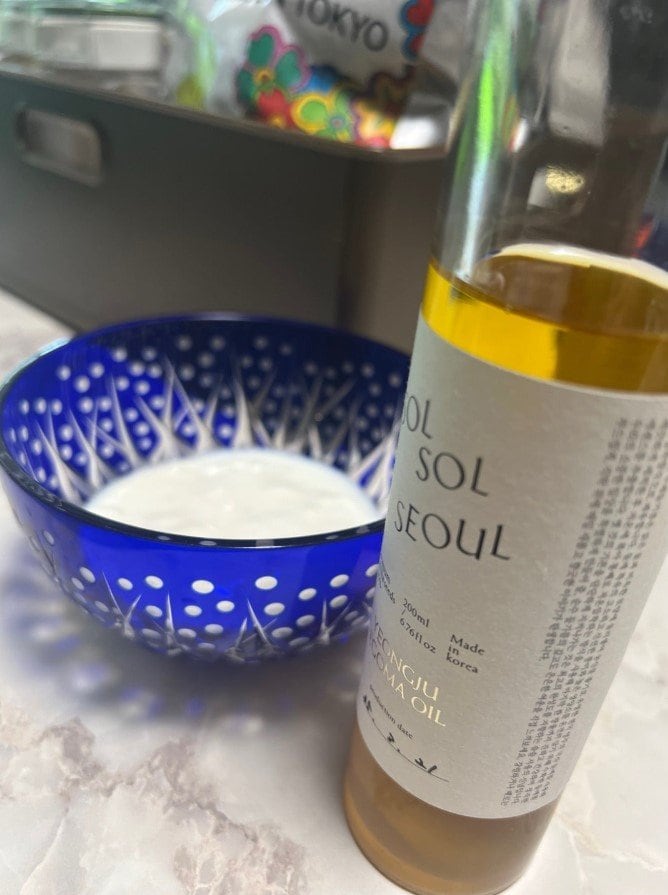 藤さんは「毎朝のルーティン」と題して「最近良質のオイルが注目されていますよね」と愛用のオイルの写真を投稿。「マイブームはえごまオイルをヨーグルトに入れて頂くこと」と、白いヨーグルトに鮮やかな緑色のオイルが足されている模様を投稿しています。