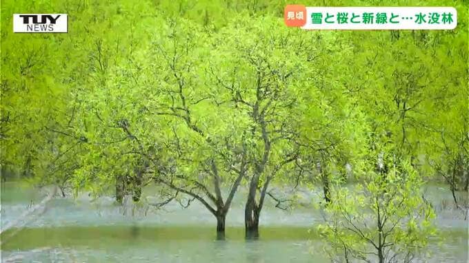 まるで物語の一幕 幻想的な風景をつくる水没林が見ごろ(山形・飯豊町)