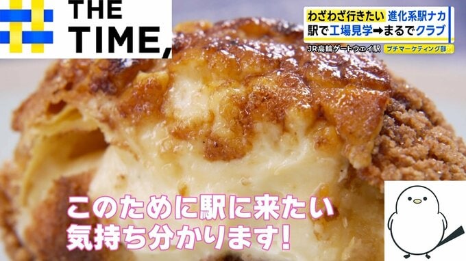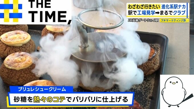 ここは工房一体型テイクアウトシュークリーム専門店で、ガラス張りの工場ではシュークリームの上にのせた砂糖を“熱々のコテでキャラメリゼ”する様子をライブパフォーマンス。