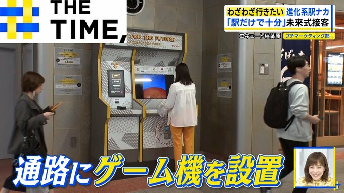 通路にはインベーダーゲームなどが楽しめる【ゲーム機】を設置。 料金は“秋葉原の美化”などのために寄付するなど、JR東日本クロスステーションの駅ナカで初となる試みであふれています。