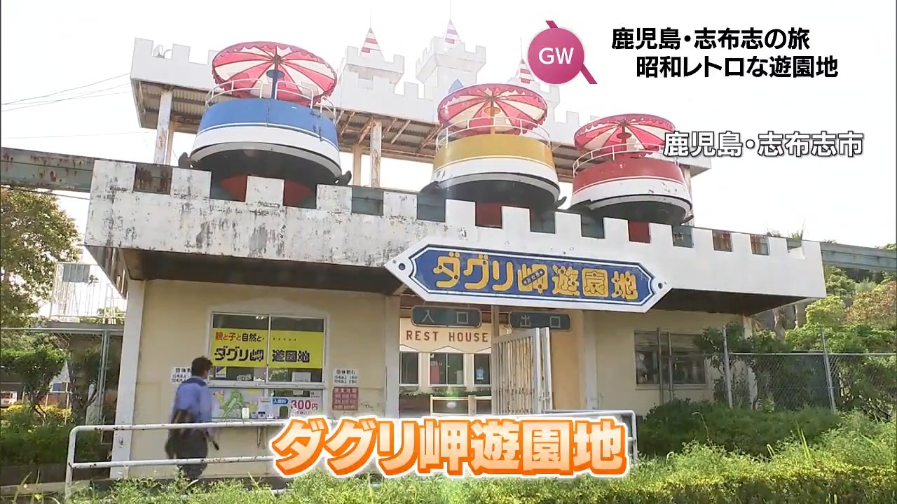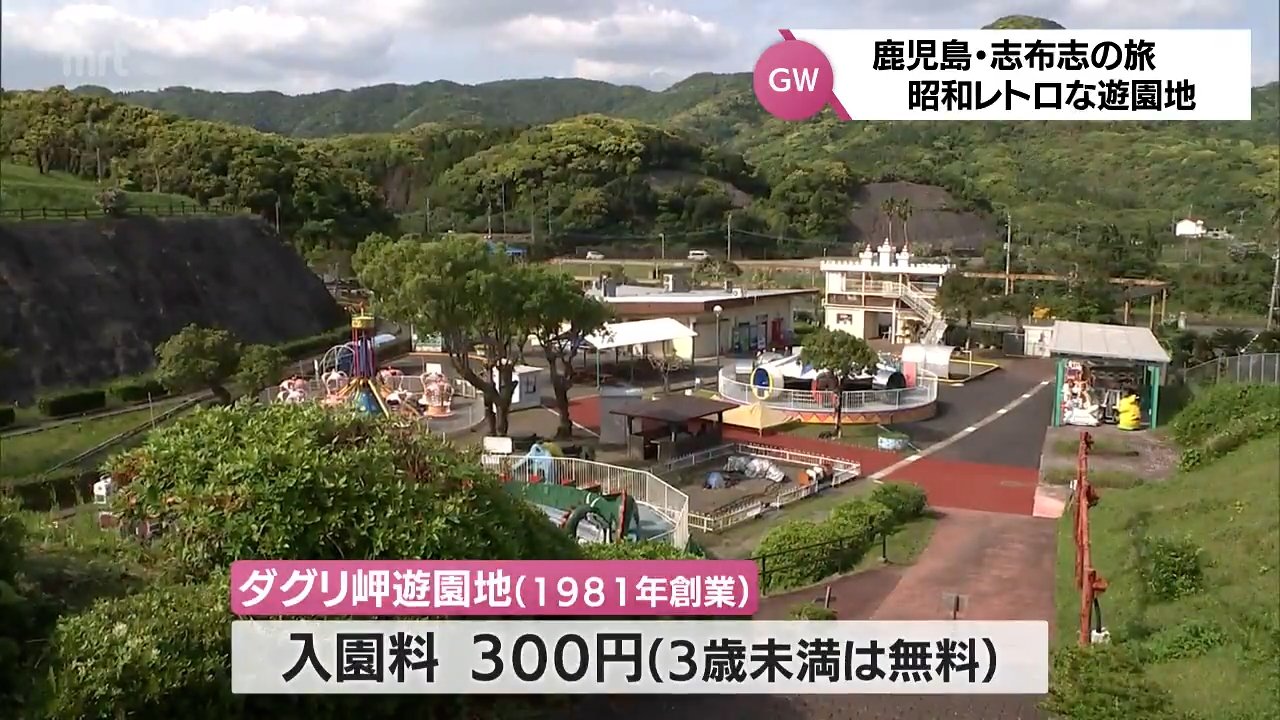 お腹を満たした後は、昭和レトロな雰囲気が魅力的な「ダグリ岬遊園地」へ。1981年創業のこの遊園地は、地元鹿児島だけでなく宮崎の家族連れにも人気のスポットです。(入園料 300円 ※3歳未満は無料)