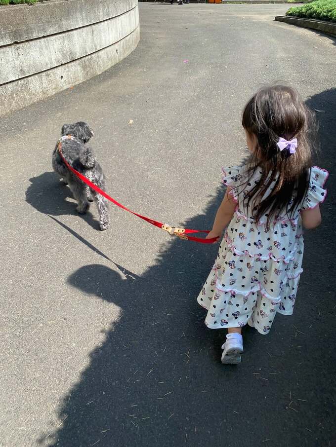 森尾さんは「久しぶりにオレオのお散歩」「公園担当の香澄さん」と、愛犬 “オレオ” のリードを初孫の “香澄さん” が持って、共に散歩している様子を投稿。森尾さんからは「お世話していると思っている香澄さん」「同じくお世話してると思ってるオレオ」「お互いを気にしながら…いいですね」と、肩を並べているように見えているようです。
