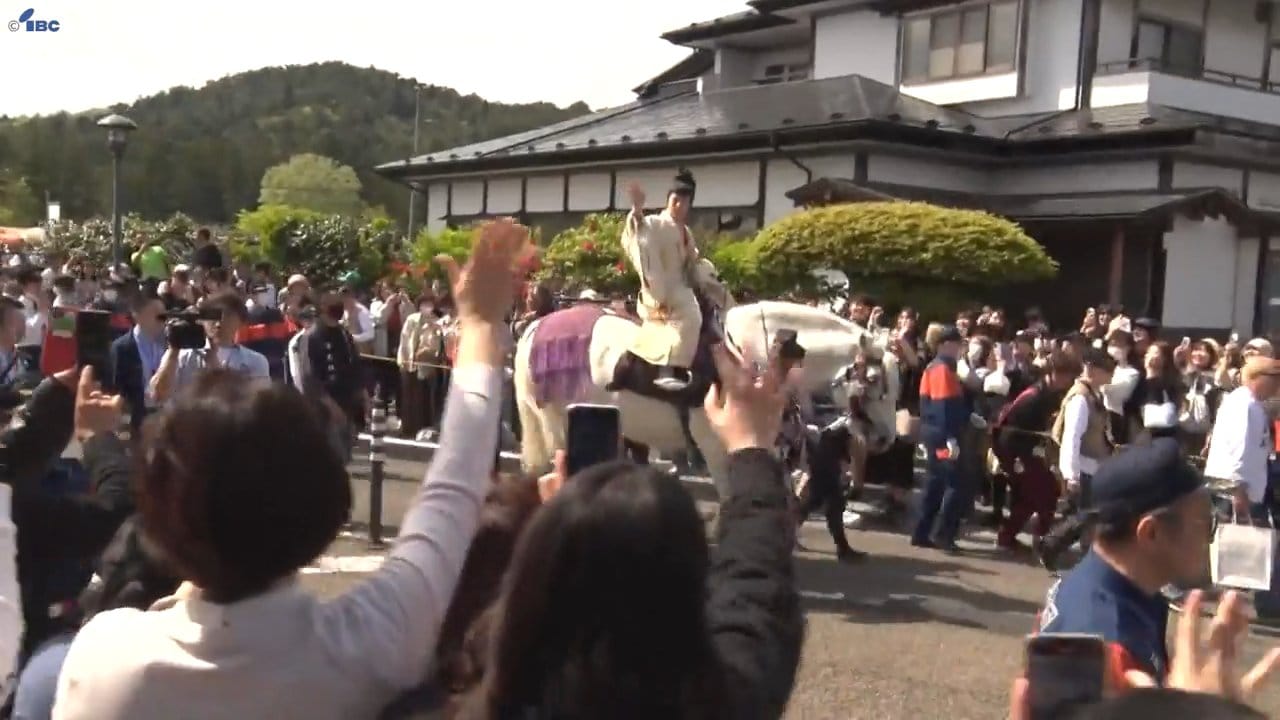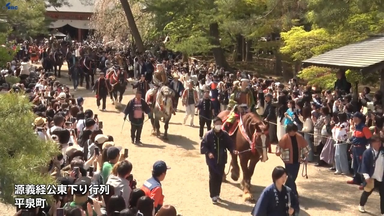 大型連休後半初日の3日、岩手県平泉町で開かれている春の藤原まつり最大の呼び物「源義経公東下り行列」が行われました。