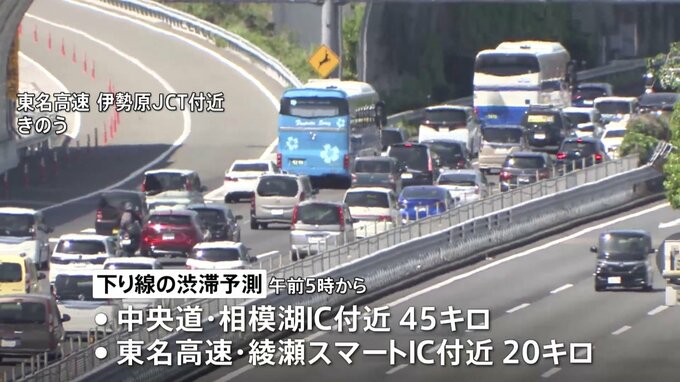 ゴールデンウィークの後半2日目のきょう、高速道路の下り線では朝から、上り線では午後から渋滞が見込まれています。高速道路各社によりますと、下り線は、きのう混雑のピークを迎えましたが、きょうも午前5時から…