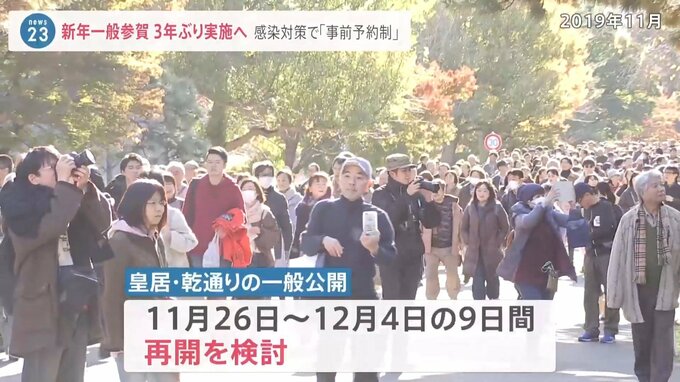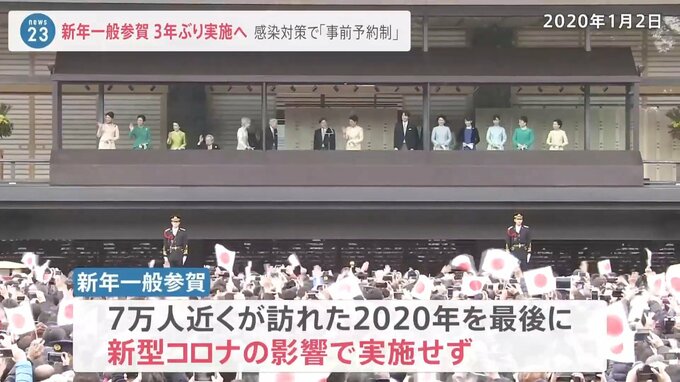 7万人近くが訪れた2020年を最後に新型コロナの影響で実施されていませんでしたが宮内庁は3年ぶりに再開する方向で準備を進めていることがわかりました。参賀者の密集を防ぐため、事前予約制にして人数を絞るなど感染対策を取る方向で調整しています。