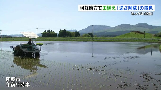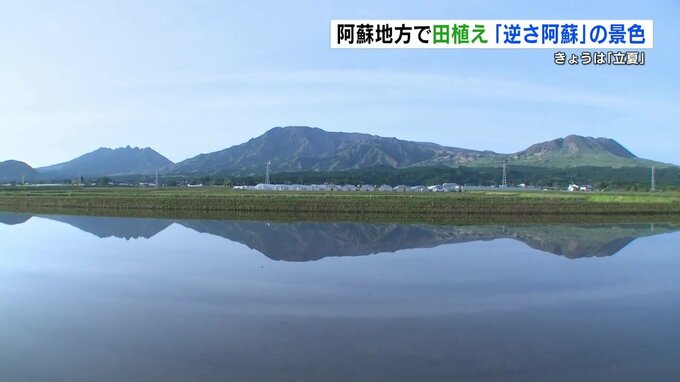 熊本県阿蘇地方では、朝、水を張った田んぼが鏡のようになり、阿蘇五岳が映るこの時期限定の「逆さ阿蘇」が見られました。