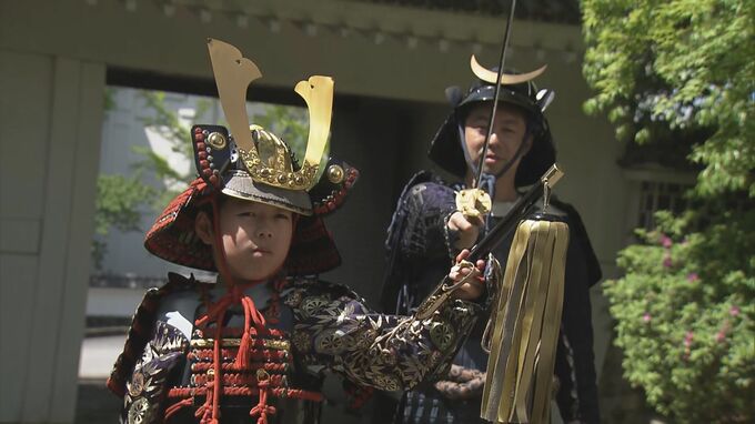 こどもの日 親子でよろい身に付け“武士気分”味わう 小3の男の子は8キロのよろいに「重たかったけどかっこいい」 愛知・田原城跡
