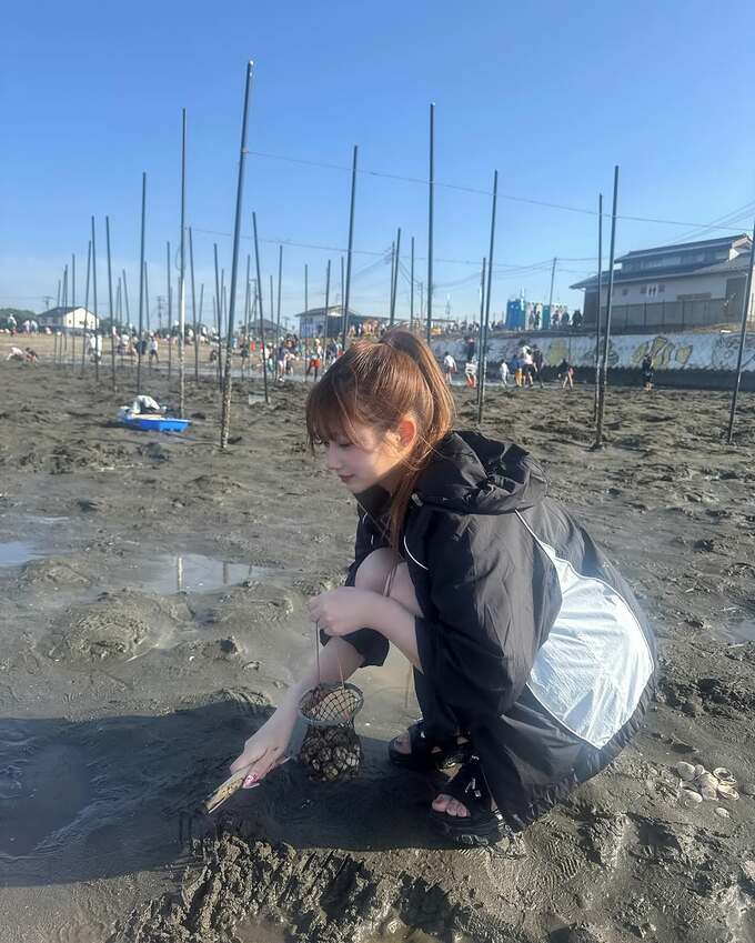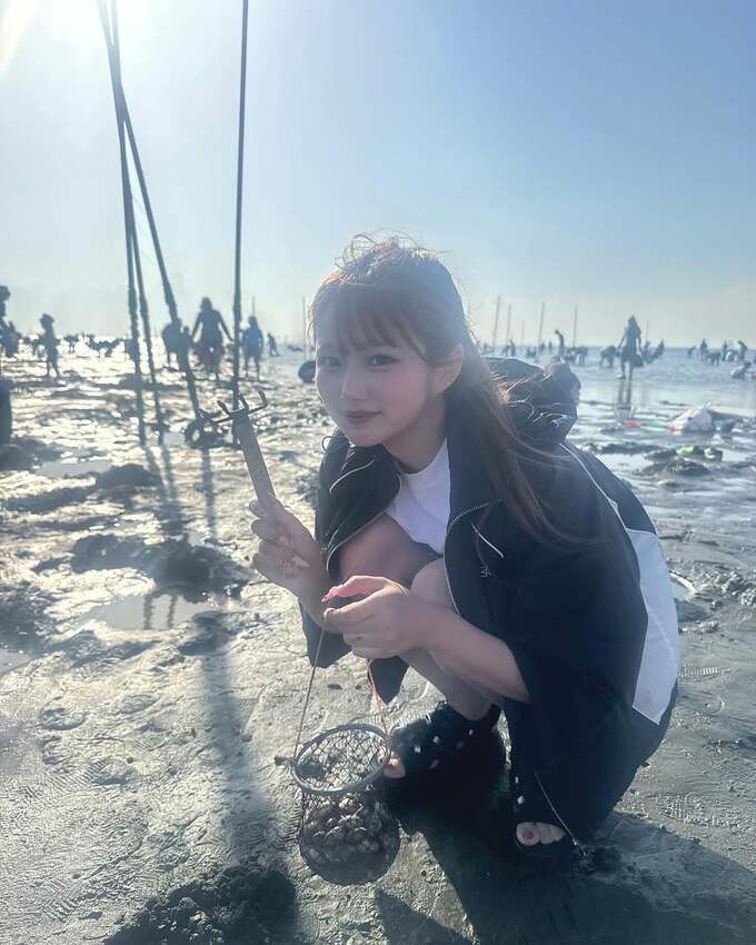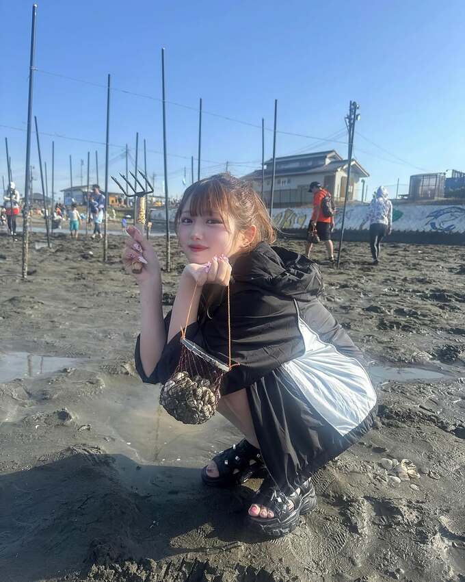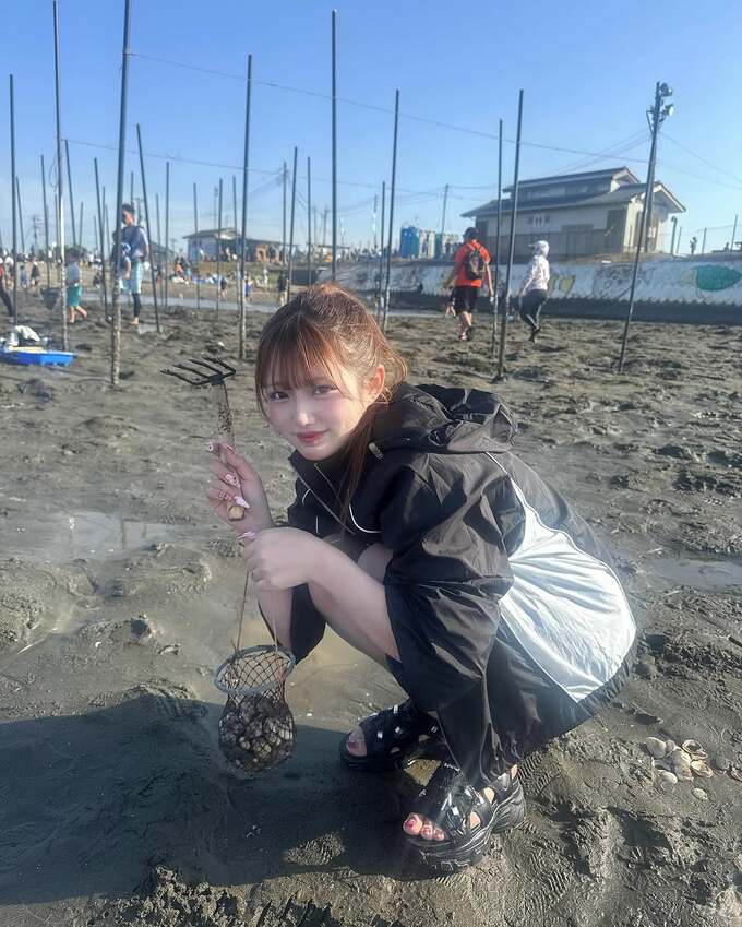 投稿された画像では、希空さんが、貝がいっぱいに入った網を手に持ち、笑顔を浮かべる様子が見て取れます