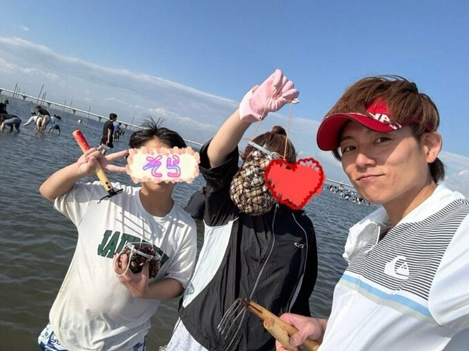 投稿された画像では、潮干狩りを楽しむ、杉浦ファミリーの姿が見て取れます。