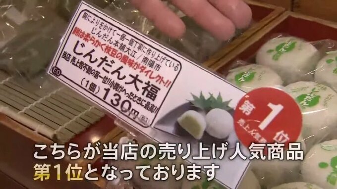 店長が紹介してくれたのは、山形県特産のだだちゃ豆をたっぷり使用した「じんだん大福」です。