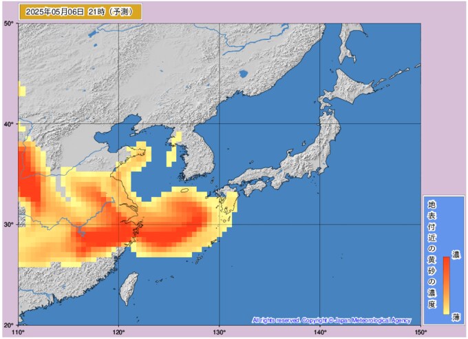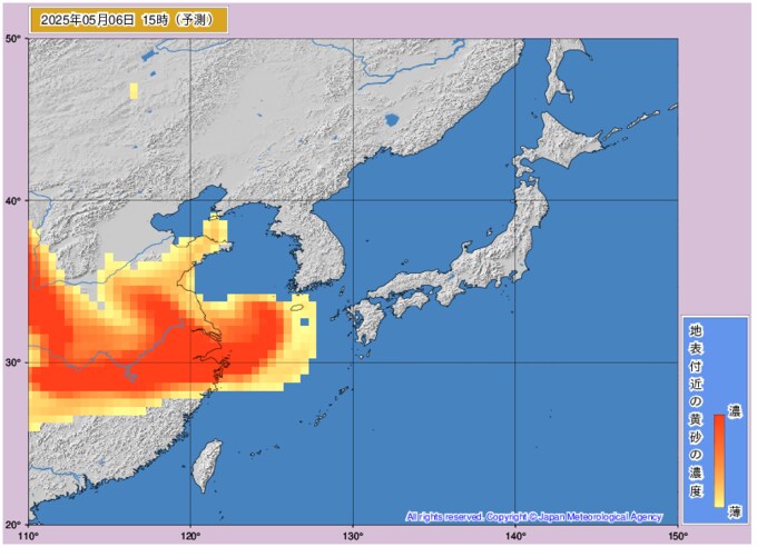 黄砂情報 7日から8日に西日本に黄砂飛来 どこに飛んでくるか画像シミュレーション 近畿・中国・四国・九州・沖縄に影響か 気象庁発表