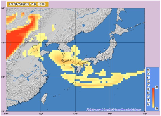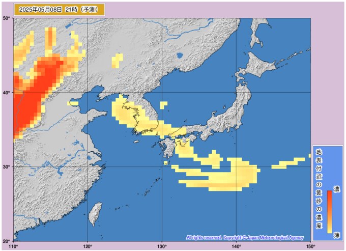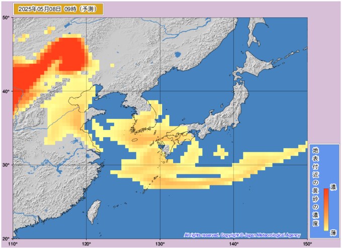 黄砂情報 7日から8日に西日本に黄砂飛来 どこに飛んでくるか画像シミュレーション 近畿・中国・四国・九州・沖縄に影響か 気象庁発表