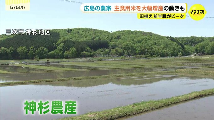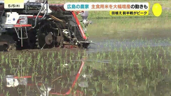 この連休、広島県内のコメ処では田植えの前半戦がピークです。コメの価格高騰が続く中、農家の中には主食用米を大幅に増産する動きもある一方で、消費者のコメ離れを心配する声もあります。