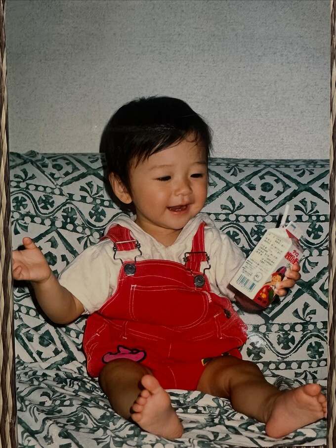 玉井さんは「こどもの日。そしてももクロメジャーデビュー15周年 たくさんありがとう!」と投稿し、紙パックのジュースを手に、笑顔でソファーに座る自身の幼少期の写真を公開しました。