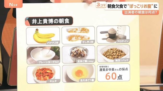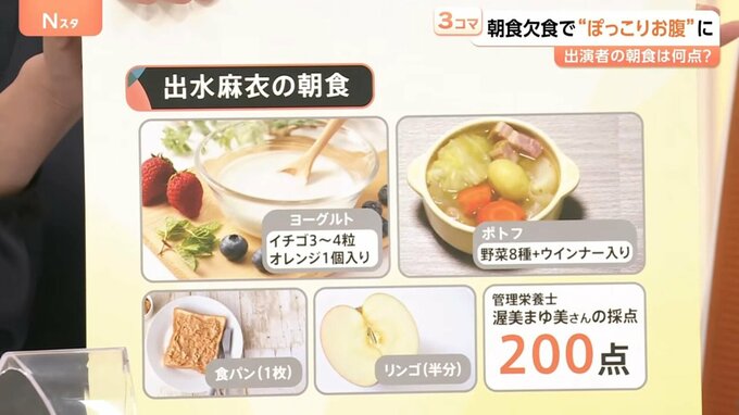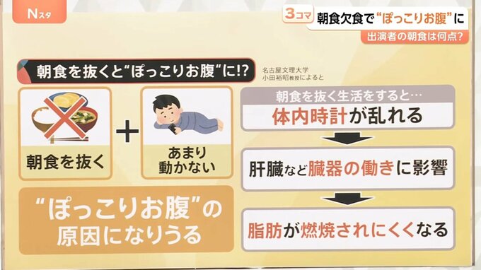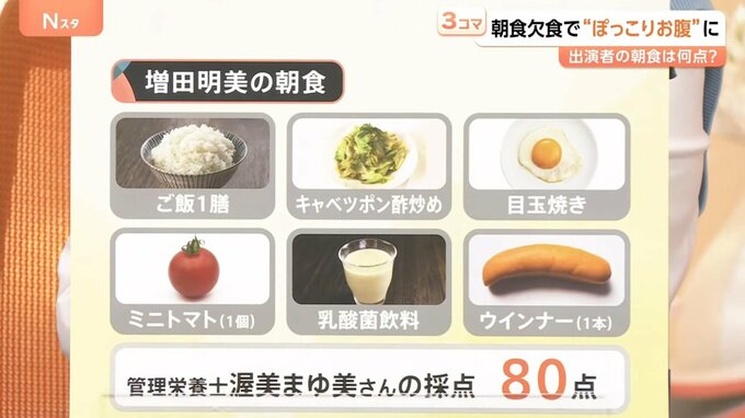 朝食欠食で“ぽっこりお腹”に 出演者の朝食は何点?
