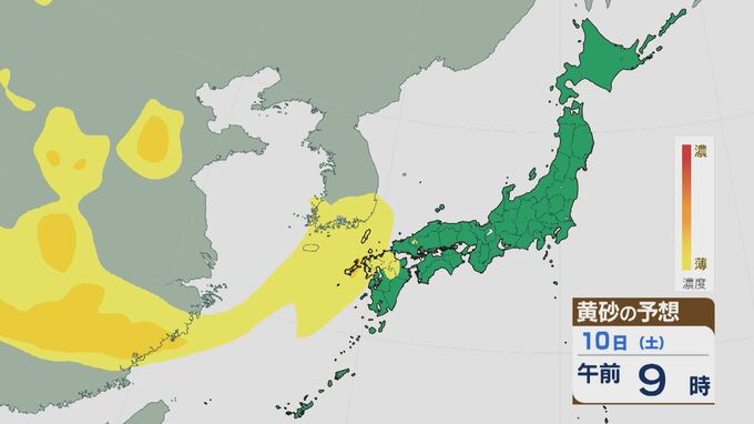 【黄砂情報】7日(水)は南西諸島や九州で 8日(木)には中国・四国でも黄砂が飛来する見込み 連休明けは西日本で注意を 最新の飛来シミュレーション