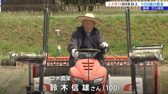 全国的に品薄や価格の高騰で注目されているコメ。そうしたなか岩手県奥州市には80年以上もコメを作り続けている100歳の農家がいます。今年も元気に田植えに取り組む男性を取材しました。