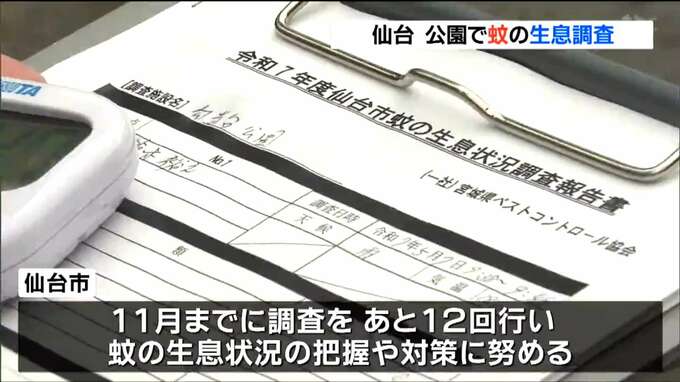 デング熱など、蚊を媒介した感染症への対策に役立てようと、仙台市は7日、公園で蚊の生息状況調査をしました。