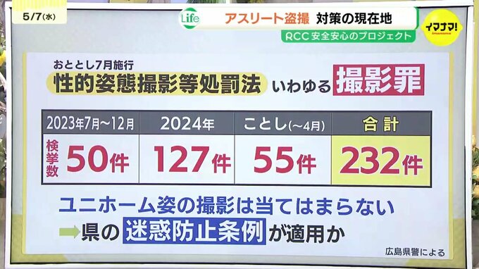 施行以降2年間の県内での検挙数は232件に上りますが、「撮影罪」は、ユニホーム姿のアスリートを撮影すること自体は対象としていません。