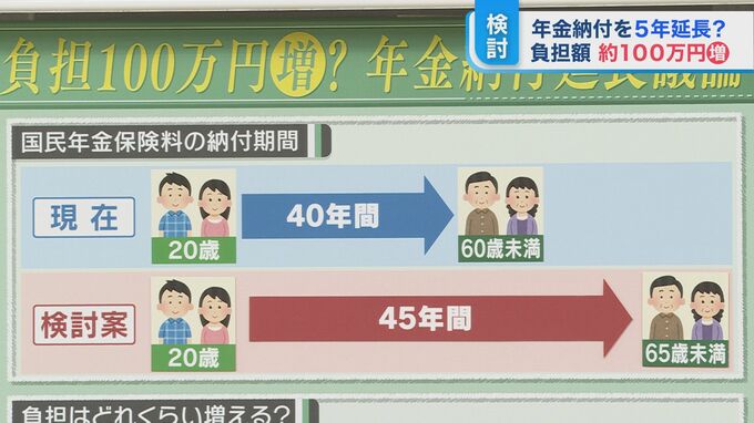 ■検討案では納付期間を65歳までに延長 負担増は約100万円
