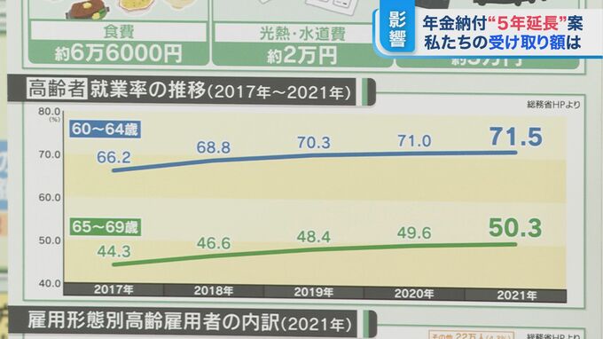 2021年には、60歳~64歳で71.5%、65歳~69歳でも半数以上の高齢者が何らかの形で働いています。