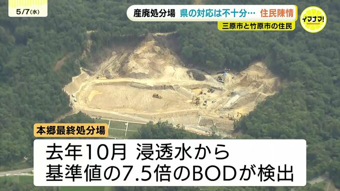 三原市にある、本郷最終処分場では、去年10月、浸透水から基準値の7.5倍となる有機汚濁(BOD)の値が検出されました。