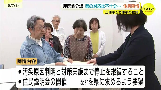 三原市にある産廃処分場について、広島県の対応が不十分だとして、三原市と竹原市の住民が、それぞれの市と議会に県への申し入れを求める陳情をしました。
