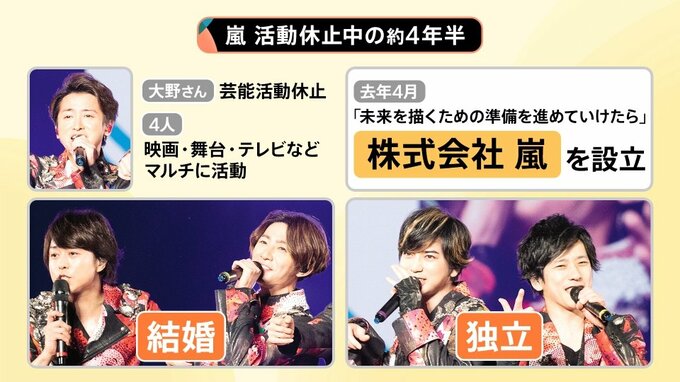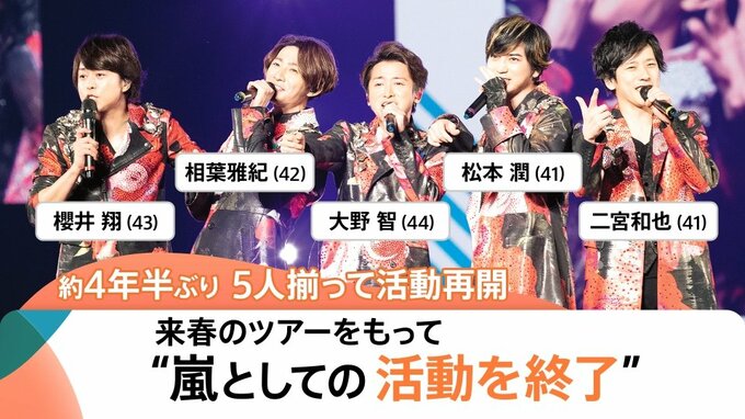 およそ4年半ぶりに5人揃っての活動再開を発表した嵐。一方で来年春のコンサートツアーをもって「嵐としての活動を終了する」とも明かしました。