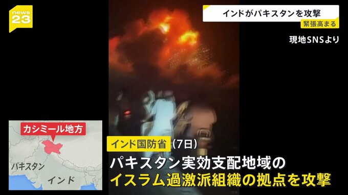 インド国防省は7日、パキスタンとの係争地、カシミール地方のうち、パキスタンが実効支配する地域などにあるイスラム過激派組織の拠点9か所を攻撃したと発表しました。先月、カシミール地方のインド側支配地域で、…
