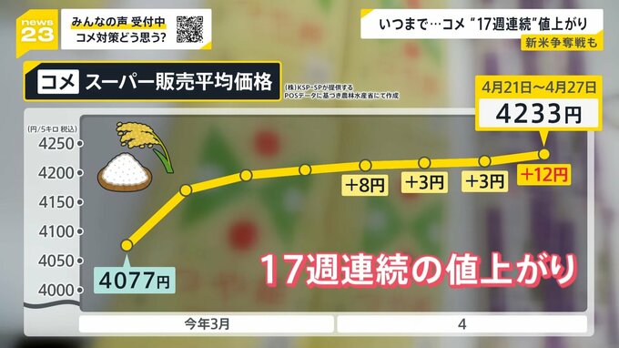 17週連続で値上がりのコメ 政府が対策を検討し始めるも街からは「遅い」の声
